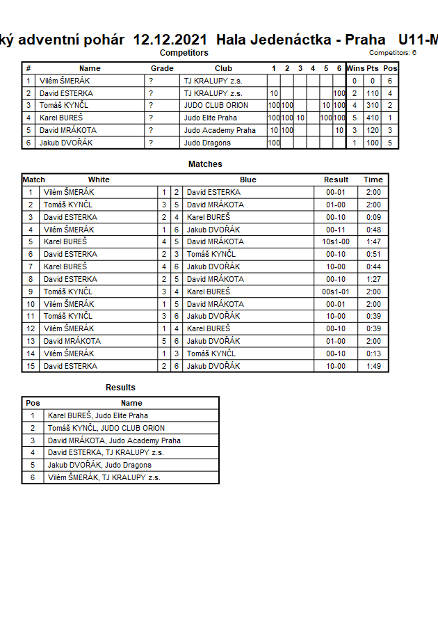 Pražský adventní pohár 12.12.2021 Hala Jedenáctka - Praha