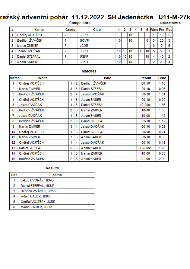 Pražský adventní pohár 11.12.2022 SH Jedenáctka