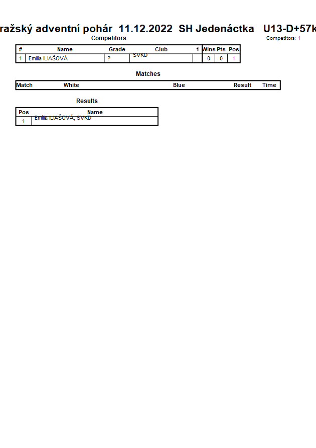 Pražský adventní pohár 11.12.2022 SH Jedenáctka